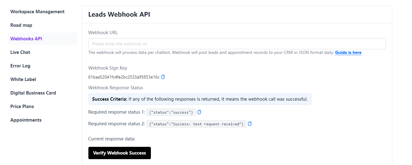 click “Verify Webhook Success” button, it will display “URL verification successful!” text, then click “Save” button